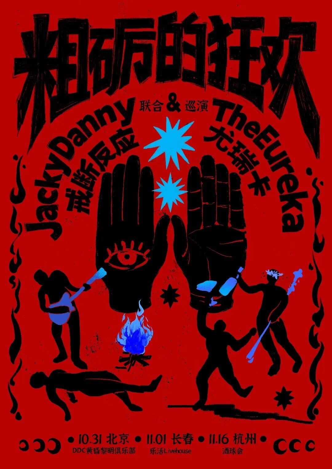 Don't miss the 'Roommate's Carnival' joint tour as Jacky Danny (截断反应) and The Eureka (尤瑞卡) bring their frenetic energy to Beijing this Halloween, October 31st! Head to DDC Club for a night of passionate live performance, complete with a vivid red and black, punk-inspired aesthetic. This is the Beijing stop on their tour, promising a wild musical party.