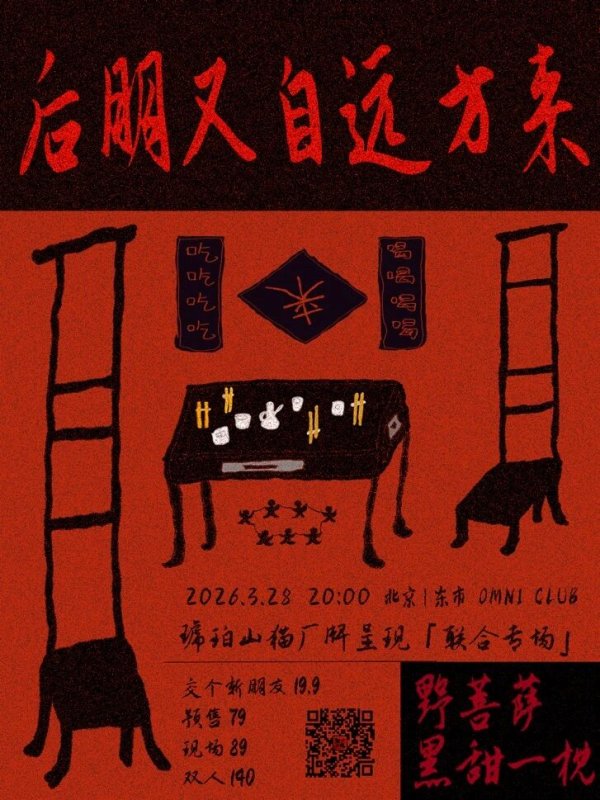 Experience a unique joint performance titled 'Old Friends from Afar' (后朋友自远方来) presented by Amber Mountain Cat Factory. This musical gathering features artists Ye Shanping (野善萍) and Hei Tian Yi Zhen (黑甜一枕), blending music and community vibes at OMNI CLUB in Beijing.